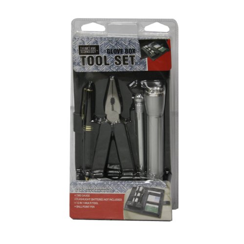 Auto Accessories for Today's Life StyleProduct InformationThe ThinkTank Technology Glove Box Tool Set is ideal for keeping items neededwhile in your vehicle including a place for registration and insurance cards amap pocket pen flashlight 12-in-1 multi-tool and tire gauge.  It fitsnicely in your glove compartment or under your seat for easy access.  Havethe right tool available; whether it be for everyday use or an emergency. Makes a great gift!Product Features Organizes essential tools for your vehicle Keeps item within reach of the driver Perfect for vehicles campers RVs and boats Easily fits under your seat or glove compartment Handy tool set for emergenciesIncludes Foldable 12-in-1 Multi-Tool Screwdriver Mini Saw Bottle Opener Corkscrew Knife Scissors and more! Tire Gauge Flashlight (Batteries Not Included) Ball Point Pen Glove Box Organizer Holder for Tire Gauge Flashlight 12-in-1 Multi-Tool and Pen Map Pocket Registration Holder Insurance Holder